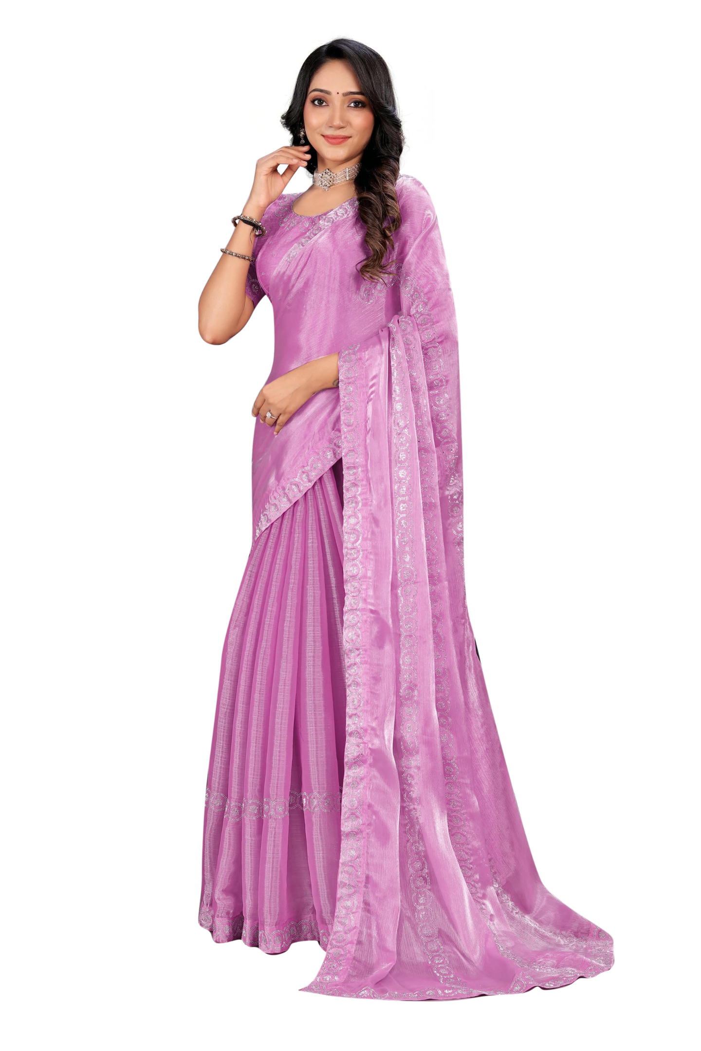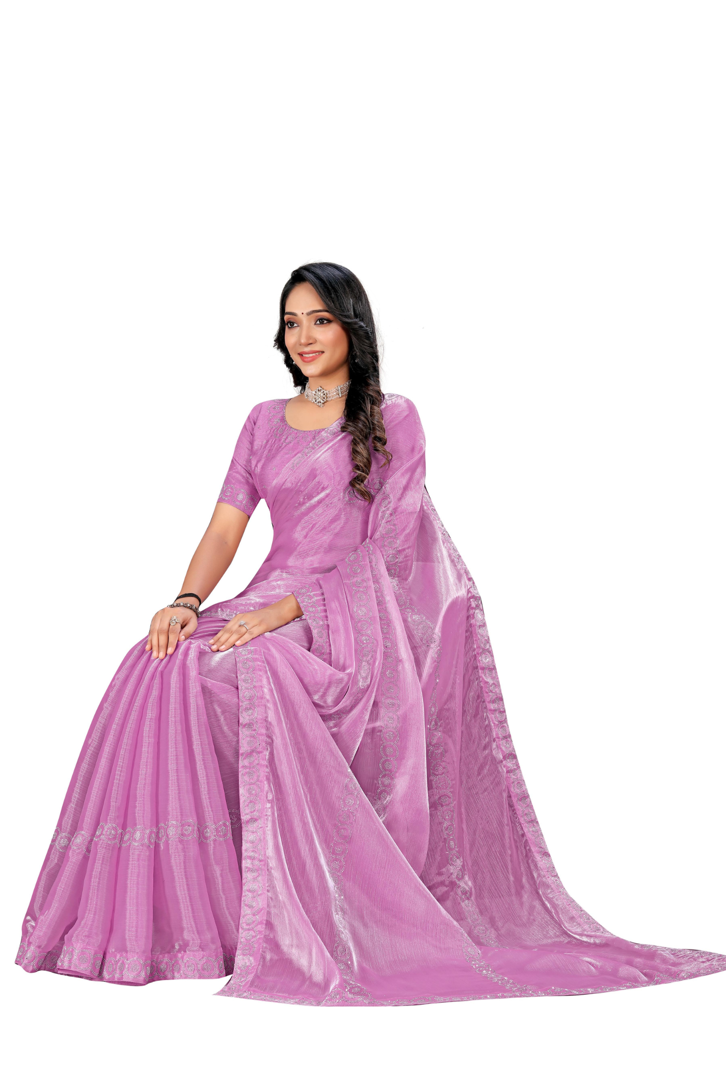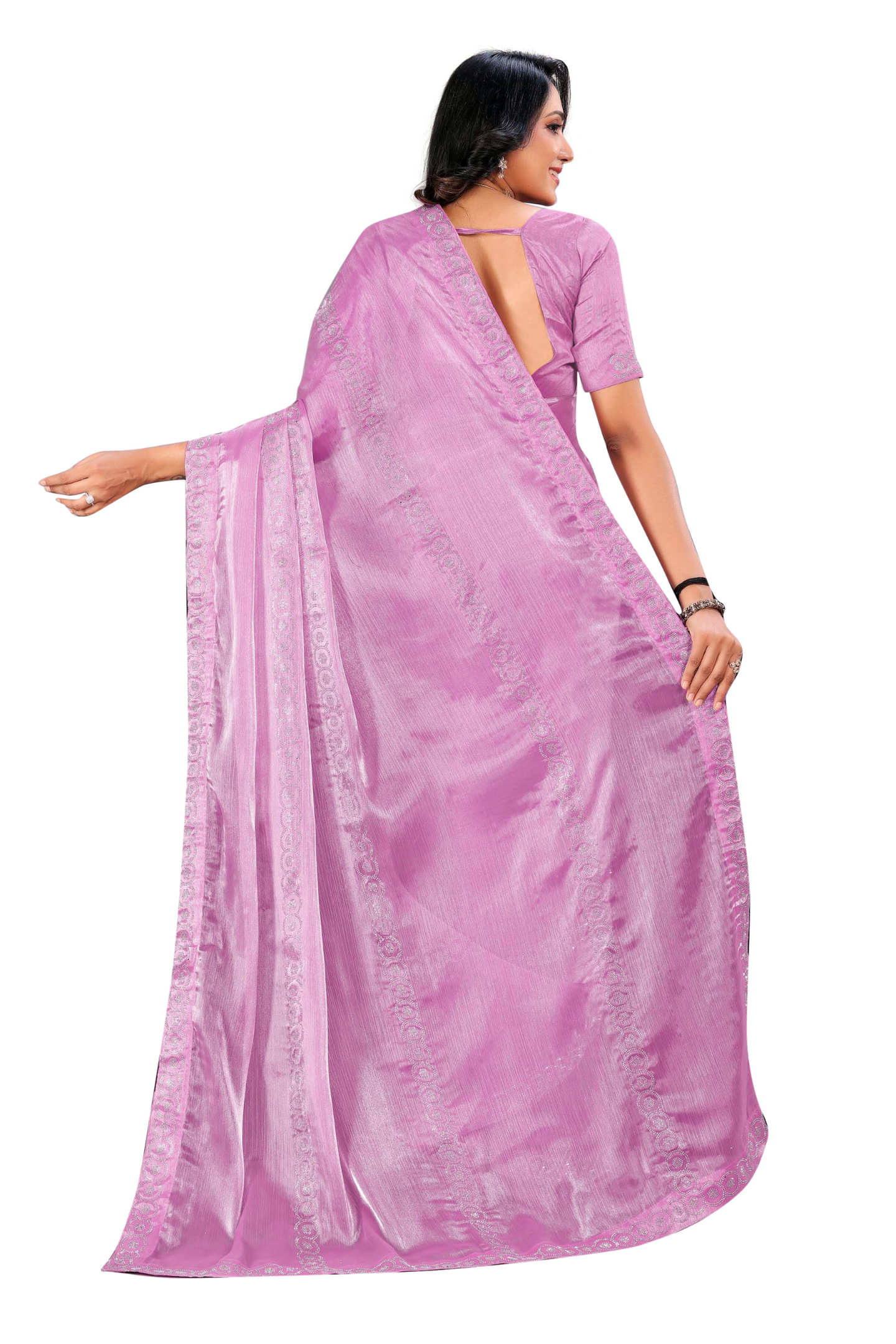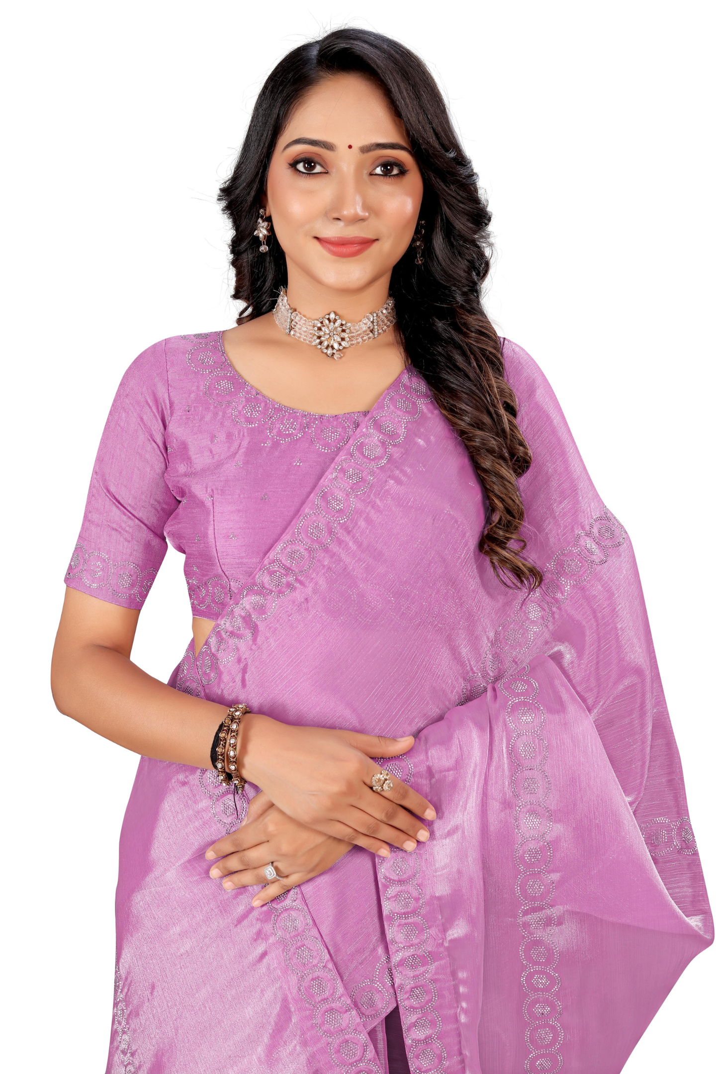 Light Pink Toned And Silver Stone Work Saree With Border Has Silver Stones Detail.